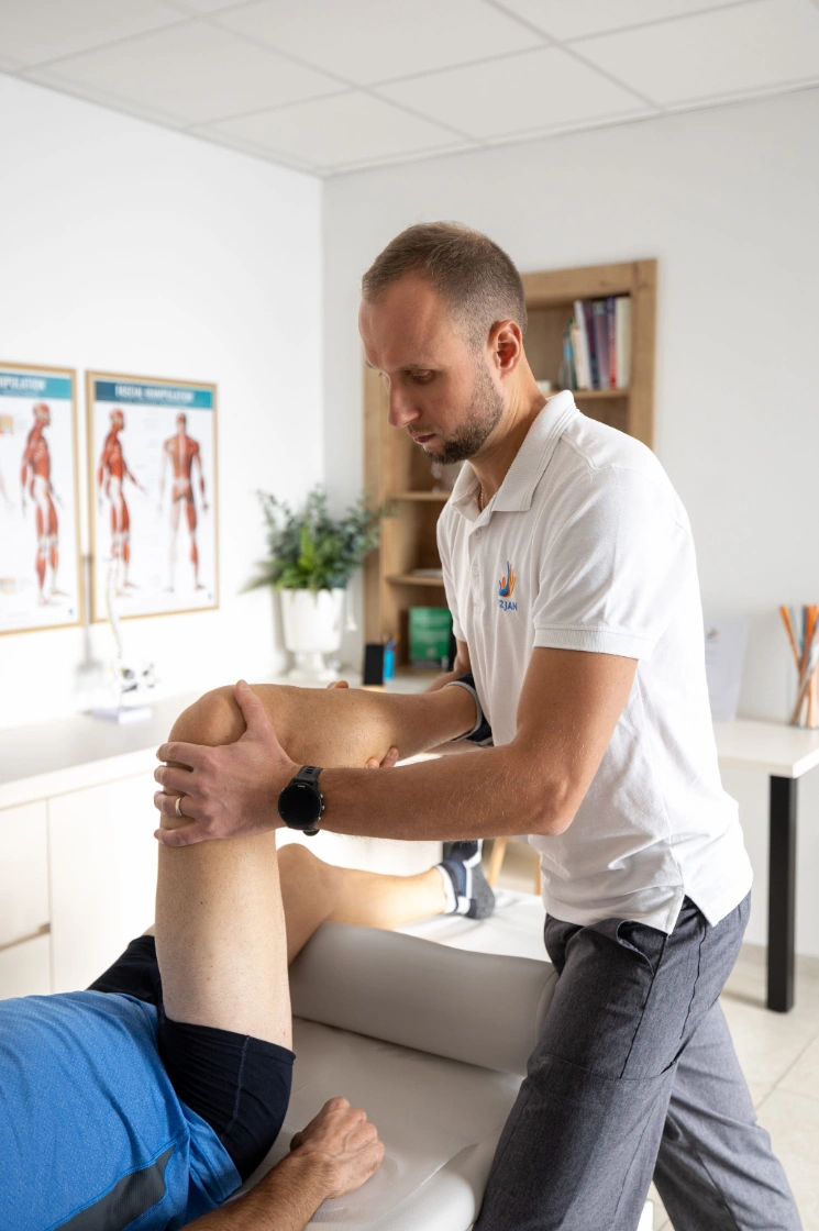 Lo studio di fisioterapia Fizjan offre un trattamento professionale e un processo di riabilitazione ai pazienti che devono affrontare le conseguenze di interventi o traumi. L'accento principale è sulla prima fase della riabilitazione, che deve cominciare al più presto dopo il trauma o l'intervento chirurgico. Proprio in questa fase della riabilitazione il fisioterapista ha maggiore influenza sull'andamento del recupero. Gli obiettivi di questa fase sono soprattutto l'acquisizione della massima flessibilità, l'attivazione dell'apparato muscolare e del suo corretto funzionamento, il miglioramento della propriocezione (la percezione del proprio corpo) e la preparazione del corpo ad affrontare sforzi sempre maggiori. Quando la prima fase con il fisioterapista volge verso la fine si continua con le fasi successive della riabilitazione, durante le quali è possibile coinvolgere un collaboratore esterno – un chinesiologo o un personal trainer, che aiuta nello svolgimento delle ultime fasi riabilitative. La riabilitazione è specifica per ogni individuo, pertanto adattiamo continuamente il percorso seguendo lo stato e il progresso del cliente. Nel lavoro vengono utilizzate anche tecniche manuali per il trattamento delle cicatrici e per il rilassamento dei tessuti, oltre all'aiuto della terapia fisica che influisce su un più rapido recupero.